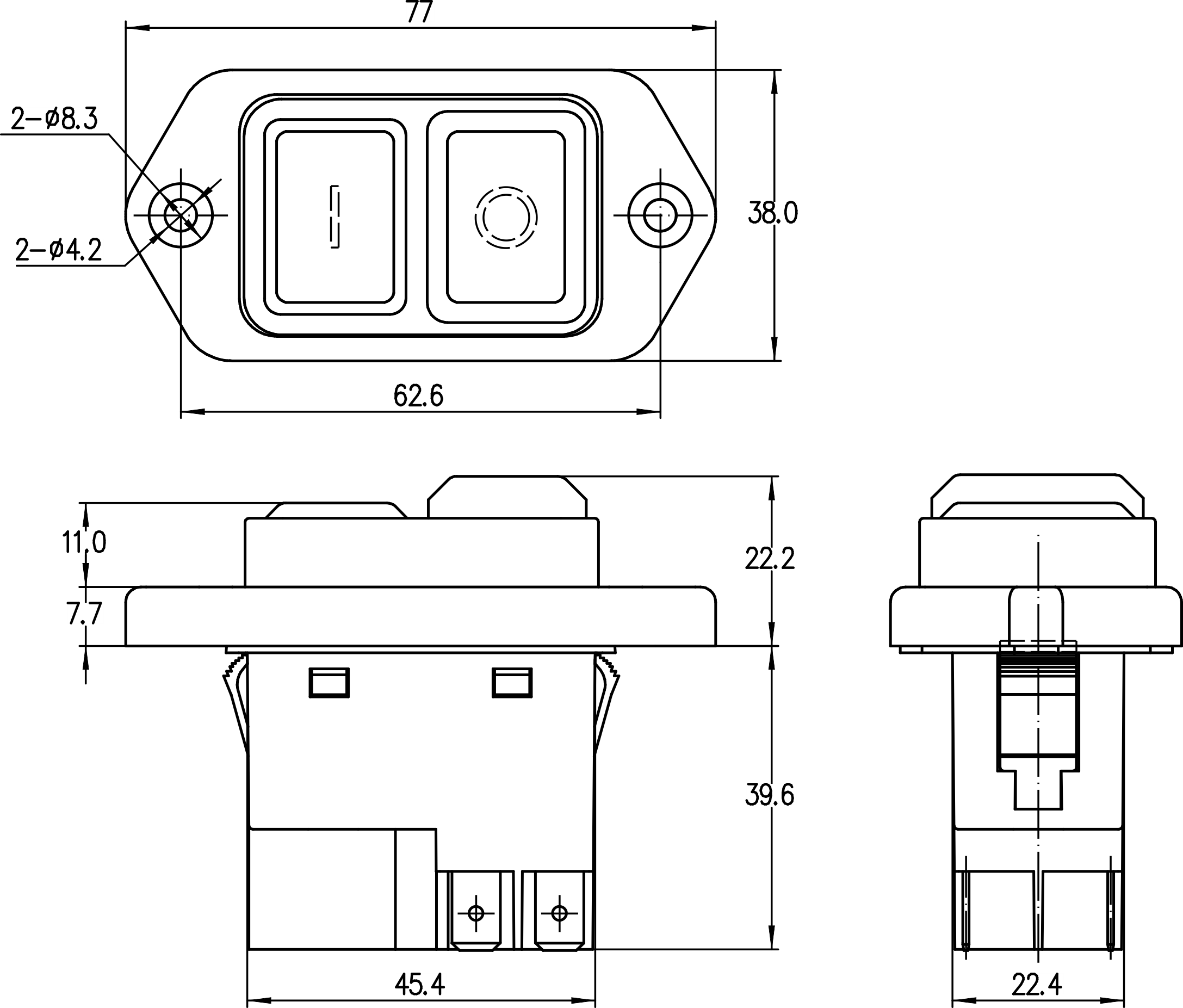 →插片端子 Plug-in terminals 6.3×0.8mm