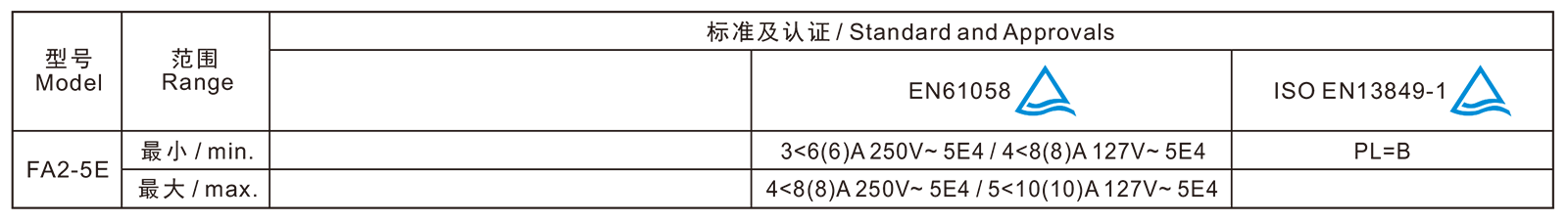 →電氣耐久壽命 Electrical life endurance≥5E4