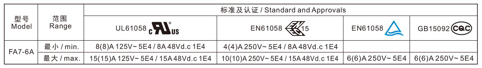 電氣參數和認證 Electric Rating and Certification