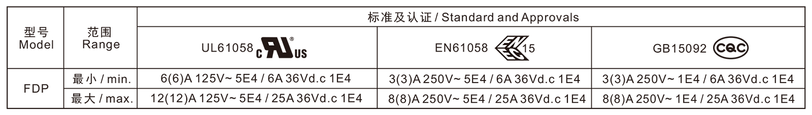 電氣參數和認證 Electric Rating and Certification