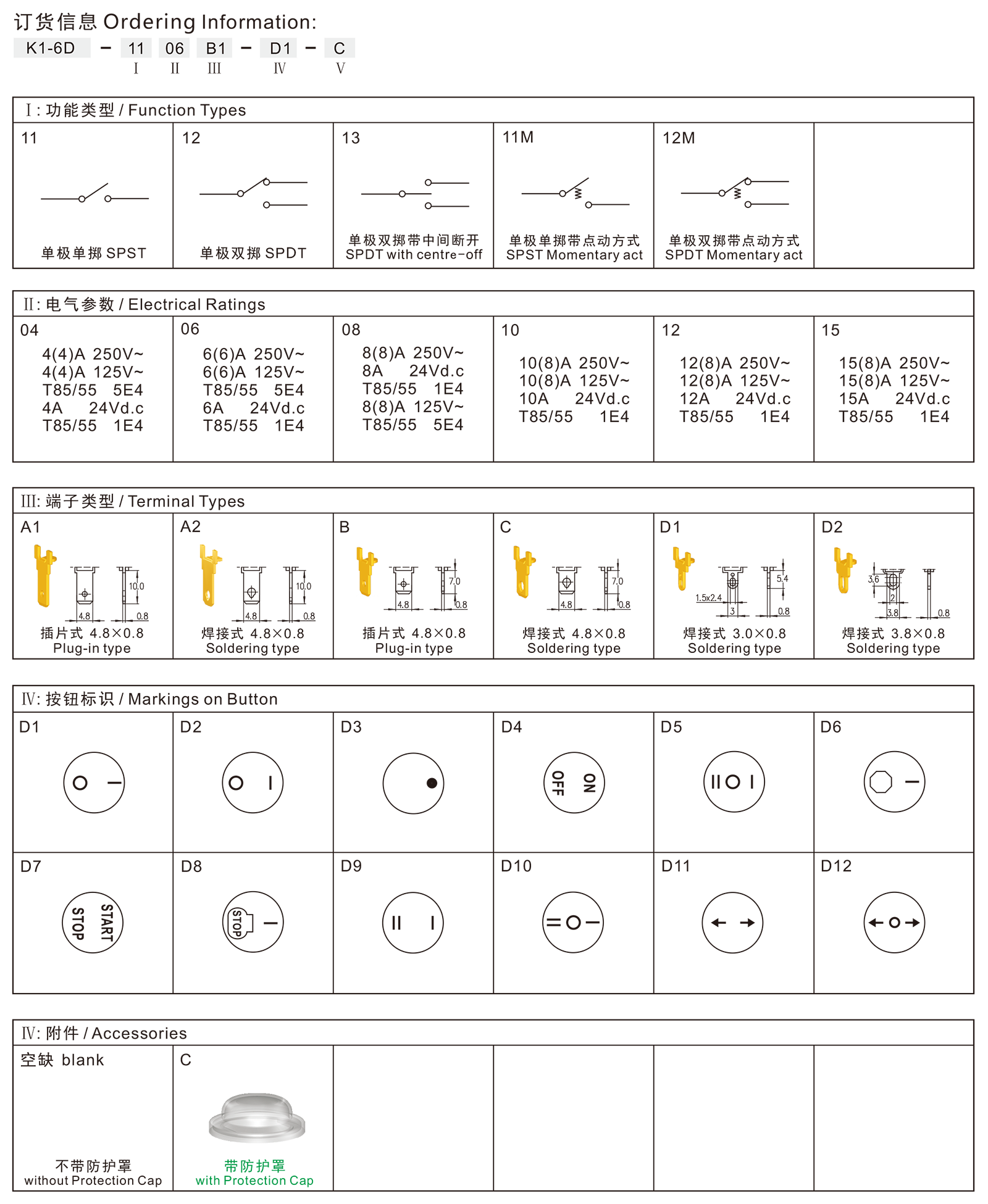 ◆K1-6D series are one standard type rocker switch, optional with Protection Cap for dustproof and waterproof, commonly for used in small Home appliances, such as Portable Vacuum Cleaners,Reading Lamps, Electric Fans, Printers, Computer Power-supplys, Power Sound Box, etc.