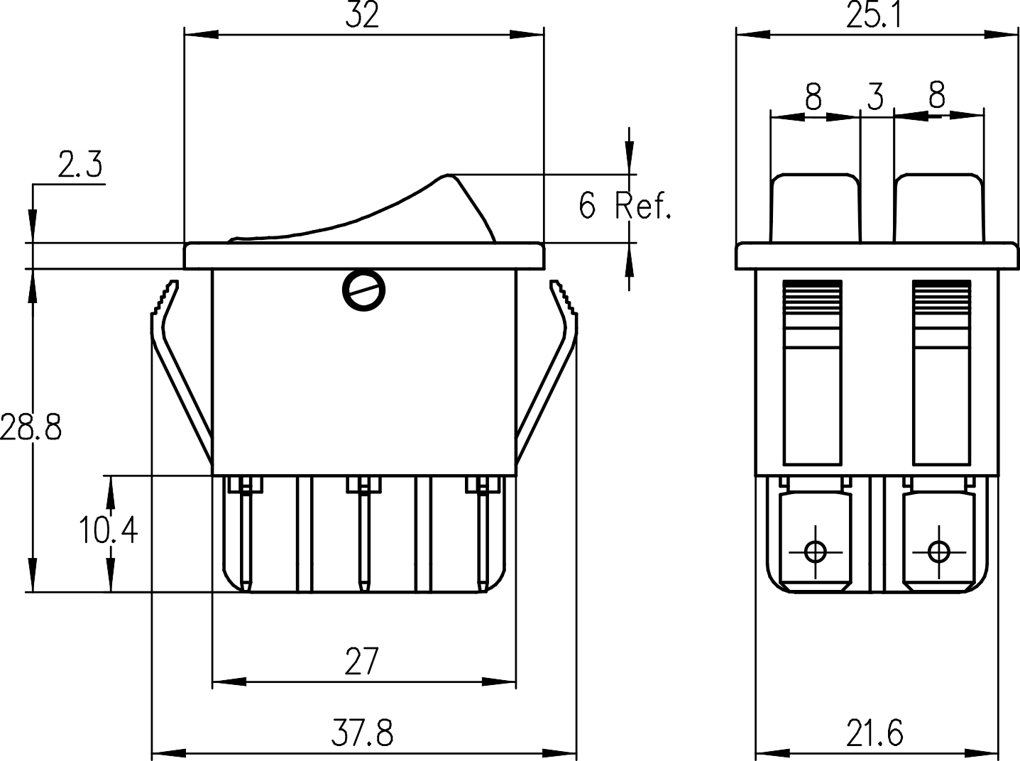 K2-1x2 series are standard type rocker switches, commonly for use in small Home appliances and office equipments, such as Electric F ans, Drinking Machines, Electric Heaters, etc.